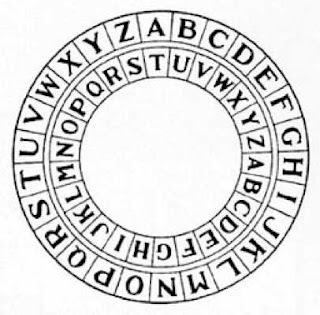 ற்கும் இலகுவான முறை.அதாவது ஒரு எழுத்து எழுதப்பட்டிருக்குமாயின் அந்த எழுத்தின் அடுத்த எழுத்தை ஆங்கில நெடுங்கணக்கு முறைப்படி இடுதல்.இப்படி ஒரு ஒழுங்கான சொல்லை நேரே எழுதாமல் அடுத்துவரும் ஆங்கில எழுத்துக்களால் எழுதுதல்.BQQMF என்றொருவார்த்தை இருப்பதாக வைத்துக்கொள்ளுங்கள்.இதை நீங்கள் குறி நீக்கவேண்டுமாயின் B இற்கு முன்னைய எழுத்து A ,Qஇற்கு முன்னைய எழுத்து P,M இற்கு முன்னைய எழுத்துL, Fற்கு முன்னைய எழுத்து E.